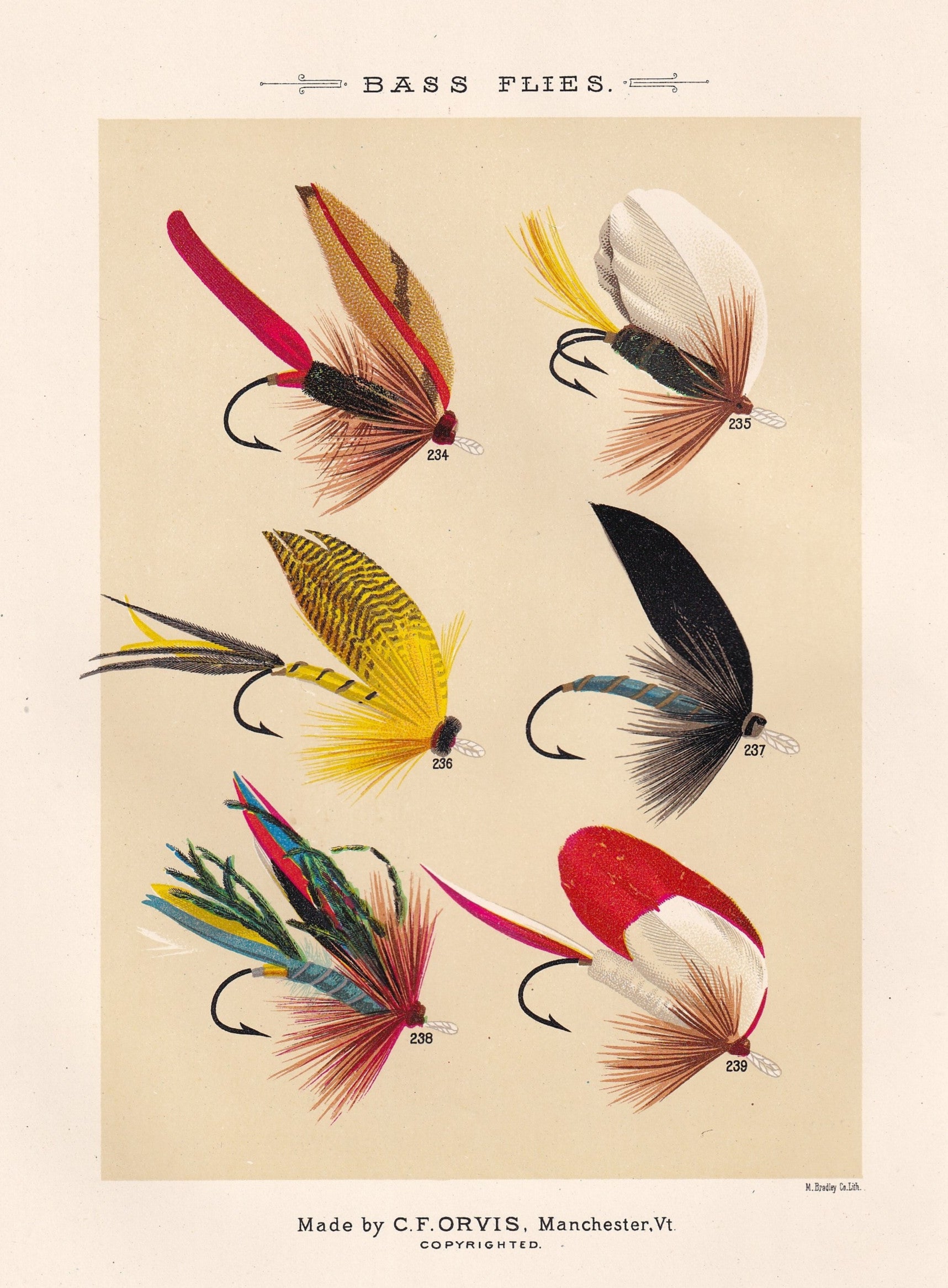 These exceptionally rare, original and hand -finished chromolithographs are from 1892 Illustrating nearly 300 salmon, trout, lake, and bass fly patterns, these prints are highly sought-after.