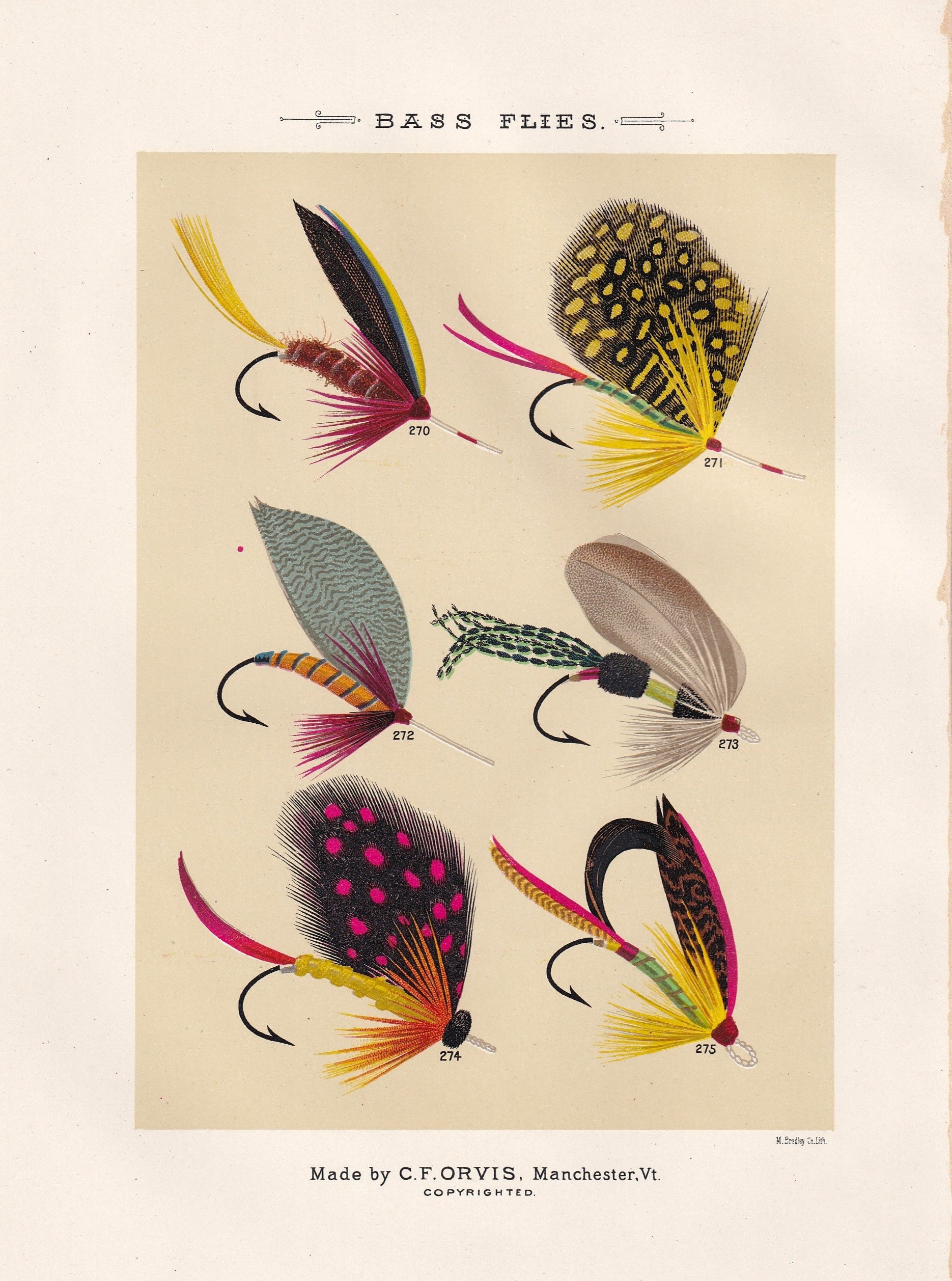 These exceptionally rare, original and hand -finished chromolithographs are from 1892 Illustrating nearly 300 salmon, trout, lake, and bass fly patterns, these prints are highly sought-after.
