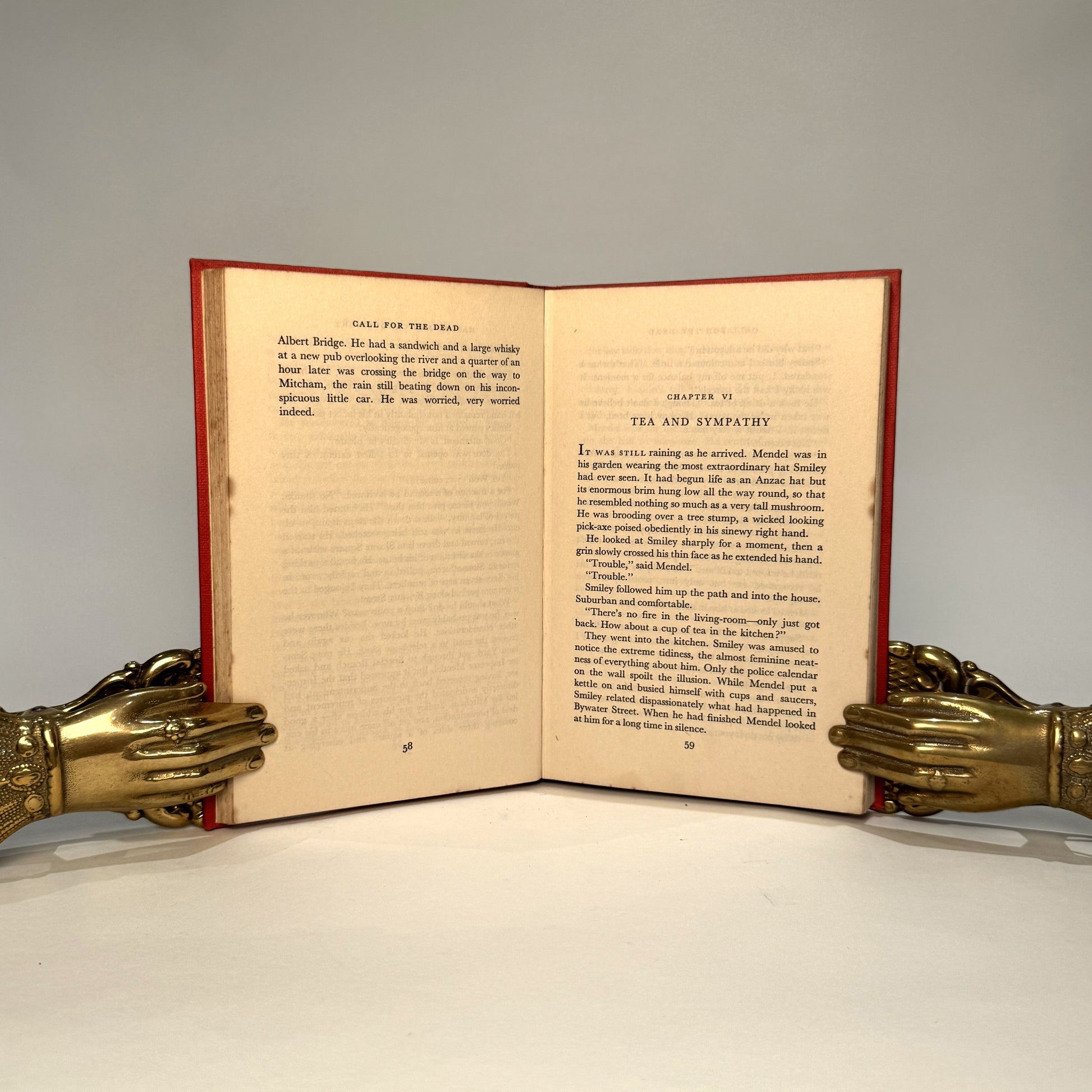 This copy is bound in the publisher’s vivid red cloth, a hallmark of Gollancz firsts. The boards remain square and clean, the spine lettering legible with only light age-toning. Internally, the book is sound, with slight spotting to end-papers and page edges, entirely consistent with age. Lacking the dust jacket, as is common, yet still a well-preserved and highly desirable example of this elusive first printing. This copy belonged to le Carré’s agent at the time, though it bears no signature or ownership inscription.