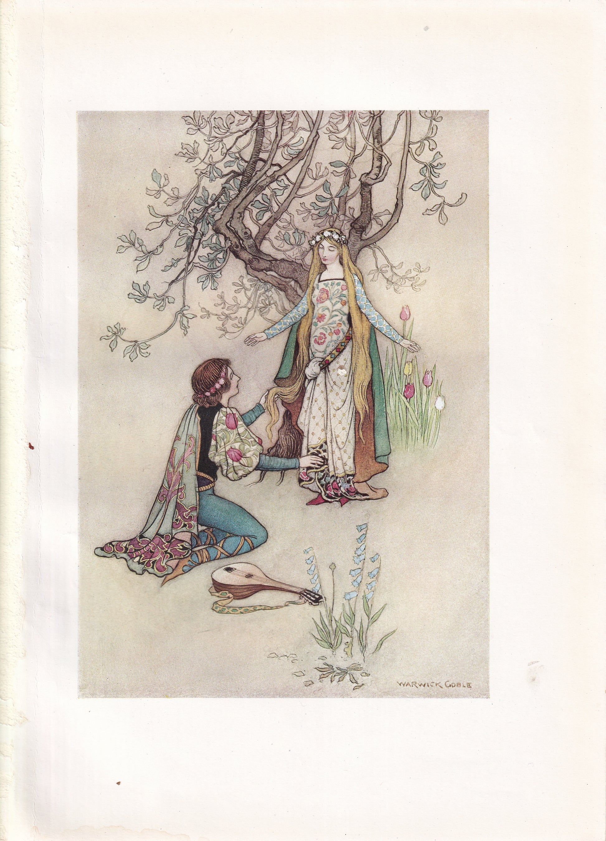 These original 1913 prints were produced using high-quality chromolithographic techniques, printed on fine art paper with delicate tints and transparent layers to achieve Goble’s trademark luminosity. Each plate exemplifies his blend of soft romanticism and refined linework — a hallmark that places him alongside contemporaries such as Edmund Dulac and Arthur Rackham.