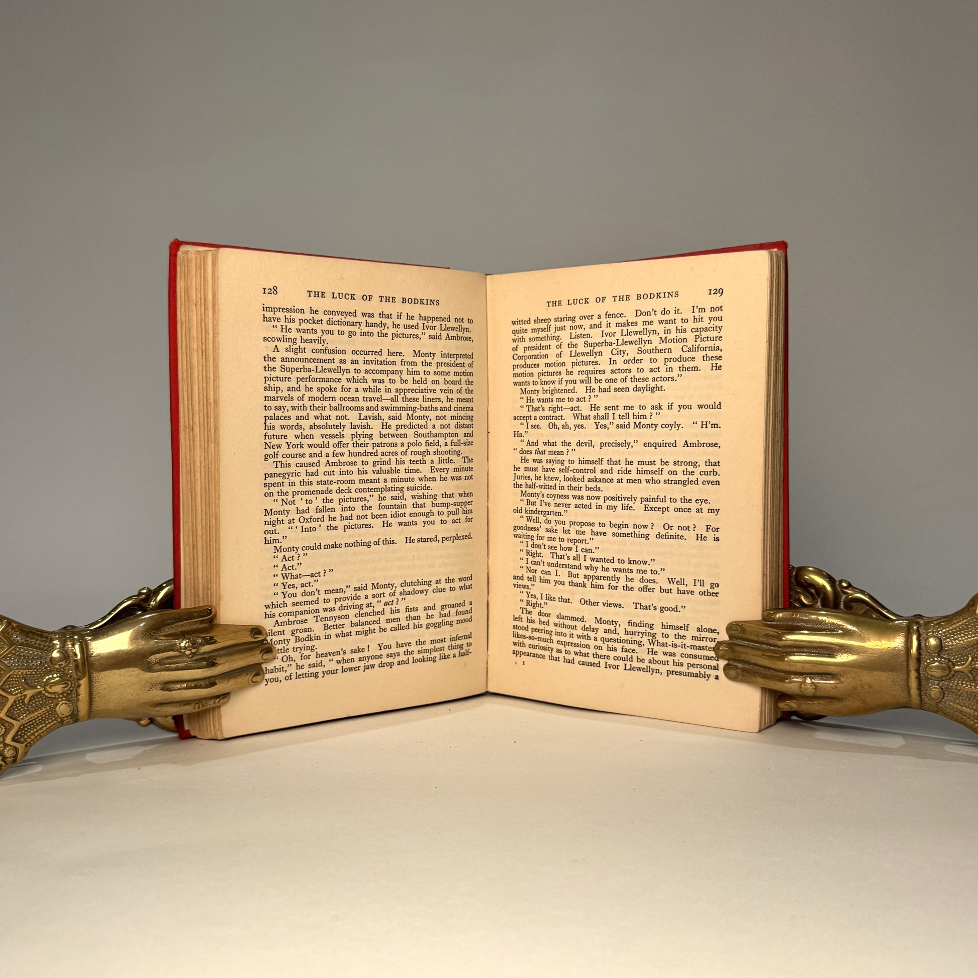 London: Herbert Jenkins Limited, 1935. First edition, first printing of one of Wodehouse’s most purely farcical Hollywood–Atlantic ocean capers, published during his peak Jenkins period. Bound in the publisher’s bright red cloth with bold black stamping, featuring the familiar Jenkins griffin device at the foot of the spine.