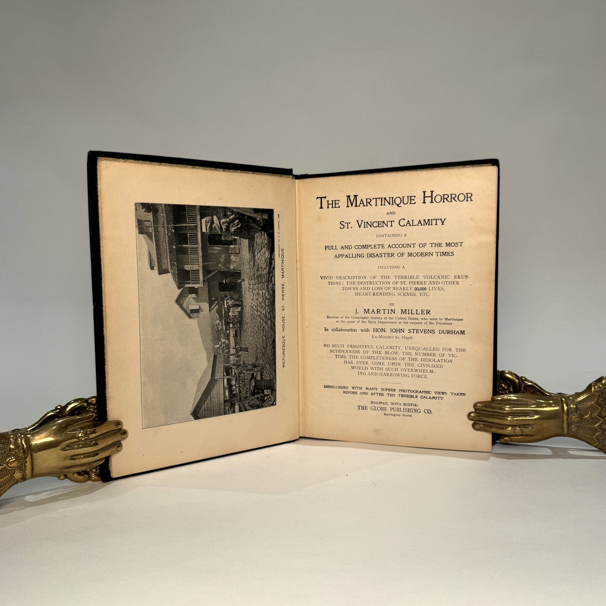 This volume combines narrative journalism with early scientific observation, offering vivid descriptions of pyroclastic flows, seismic activity, and the aftermath of the eruptions across the eastern Caribbean. Miller’s text is accompanied by numerous photographic plates depicting the ruined towns, geological formations, and scenes of local life before and after the catastrophe. These images remain among the earliest visual records of volcanic disaster in the region.